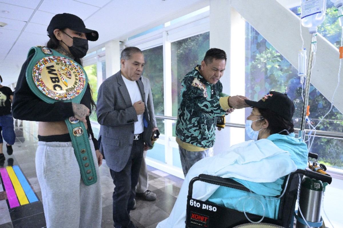 Los campeones Mariana “Barby” Juárez, Humberto “Chiquita” González, Pipino Cuevas, Isaac “Tortas” Bustos y Víctor Rabanales compartieron un hermoso y memorable momento de unión durante una visita de WBC Cares al Instituto Nacional de Cancerología en la Ciudad de México, junto con la Fundación “Somos Luz”.