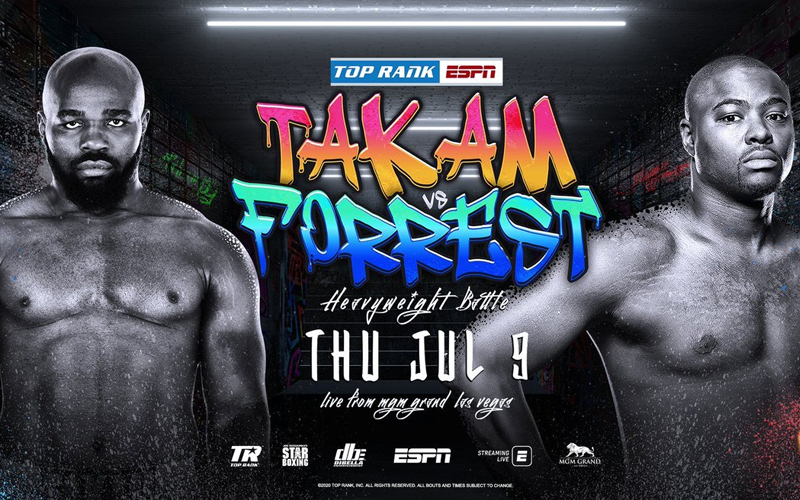 Takam ha ganado tres peleas seguidas y busca otra oportunidad de disputar el título mundial a sus 39 años. Un olímpico de 2004 para su nativo Camerún, Takam, quien es co-promovido por Star Boxing de Joe DeGuardia, ha ganado peleas contra los ex retadores del título mundial Michael Grant y Tony Thompson. Forrest por su parte, ha sufrido solo una derrota desde 2014, una controvertida decisión dividida contra Jermaine Franklin en julio pasado.