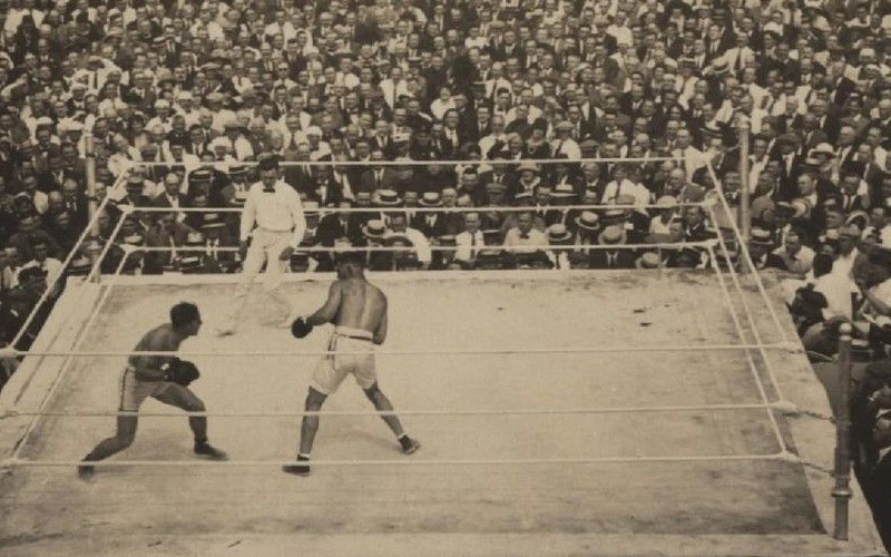 2 de julio de 1921.- En un escenario de madera, construido especialmente para esta pelea por el promotor Tex Rickard, el inmortal Jack Dempsey puso fuera de combate en cuatro asaltos al ídolo francés Georges Carpentier y se mantuvo sobre el trono mundial de peso completo. El encuentro se efectuó en los “30 acres de Boyle”, situados en un suburbio de Jersey City, Nueva Jersey, sobre los que se edificó el escenario. La batalla pasó a la historia, entre otros aspectos, como la primera que recaudó más de un millón de dólares en las taquillas.