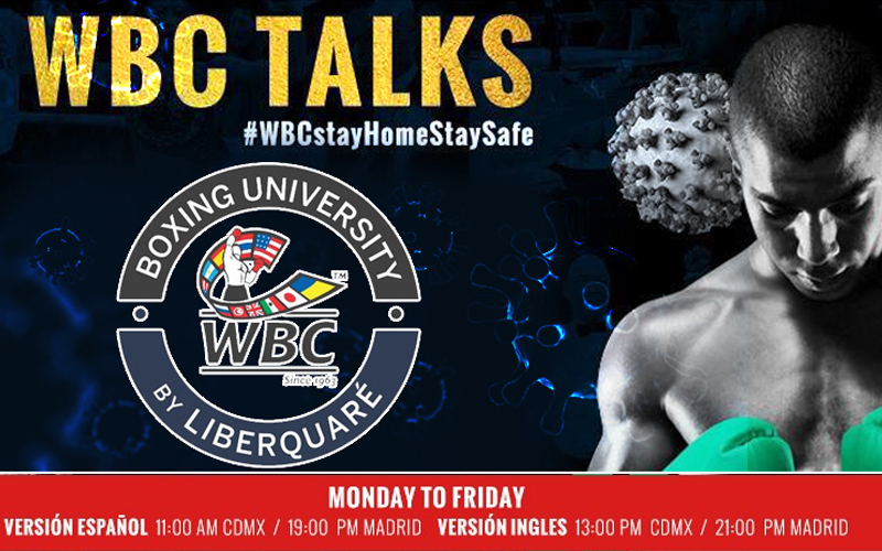 El Consejo Mundial de Boxeo y la Universidad LiberQuaré, por medio de la WBC University, han llevado a cabo exitosamente 13 episodios de WBC TALKS, una serie de transmisiones en www.facebook.com/wbcuniversity, que mantiene a la comunidad conectada con el mundo del boxeo desde casa con interesantes platicas de diferentes temas.