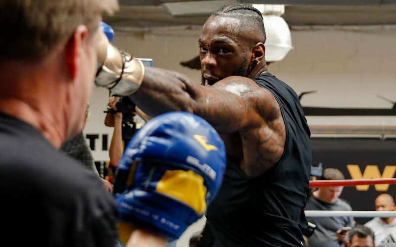 El campeón de peso completo del WBC Deontay «The Bronze Bomber» Wilder (40-0, 39 KOs) de Tuscaloosa, Alabama, realizó una sesión de entrenamiento este el lunes por la tarde en el Churchill Boxing Gym de Santa Mónica, California.
